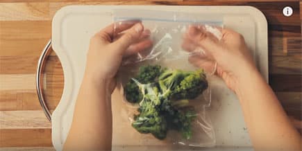 Em sacos plásticos de uso culinário, e próprio para congelamento, armazene os vegetais e leve para o freezer.