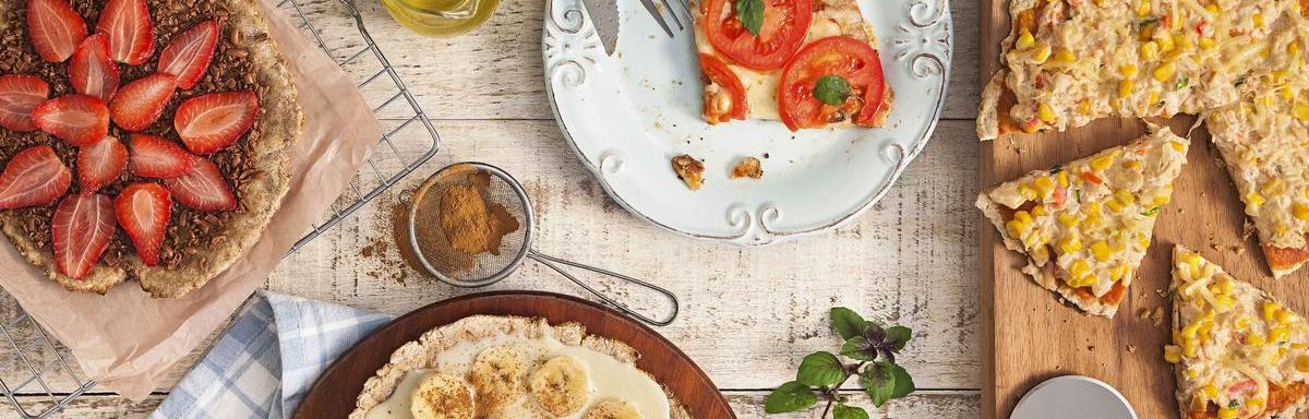 5. Massa Pizza Integral: rica em fibras, essa massa feita com farinha integral, linhaça e aveia é uma boa opção para quem quer adotar uma dieta diferente e variar o cardápio.