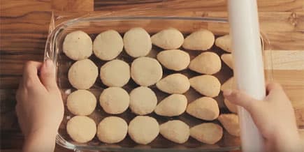 Pode assar os pães de queijo ainda congelados, em forno pré-aquecido.