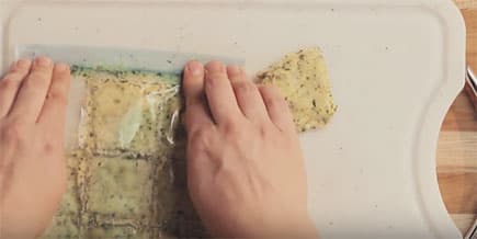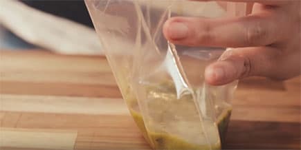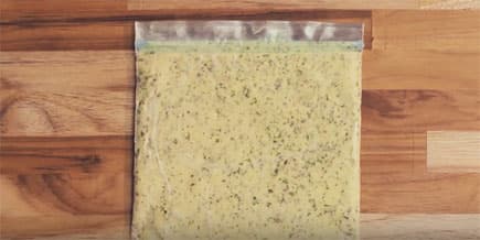 - Despeje a mistura em um plástico de uso culinário e com fechamento, espalhando bem para ficar uma camada uniforme.