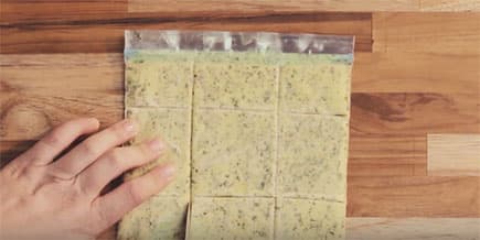 - Antes que congele por completo, retire do freezer, e faça marcações de "quadrados" para ficar mais fácil de quebrar a parte que for usar.