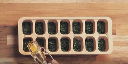 - Em forminhas de gelo, coloque as ervas picadas e cubra com azeite. Leve para congelar. Pode ser usado em molhos, marinadas ou mesmo em sopas.