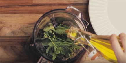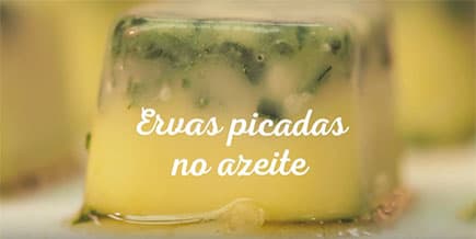 - Ervas batidas no azeite - Em um liquidificador, bata as ervas com um pouco de azeite até ficar homogêneo.
