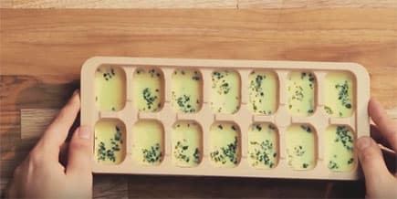 - Em forminhas de gelo, coloque as ervas picadas e cubra com água. Leve para congelar.