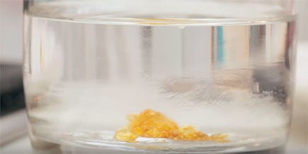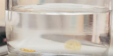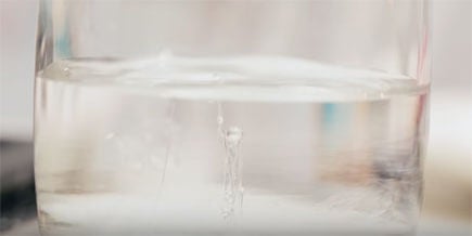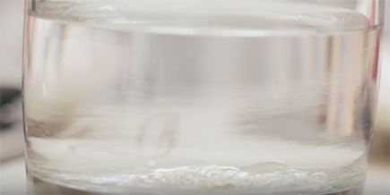 Ao mexer rapidamente na panela, dá para ver o fundo da panela. Ao pingar na água, formam bolinhas, que vão dissolvendo aos poucos.