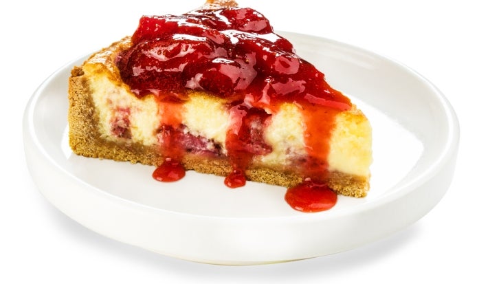 Receita de Cheesecake Moça de Morango deliciosa feita com Biscoito de Maisena TOSTINES, MOÇA Leite Condensado Light, Requeijão Cremoso Light NESTLÉ e morangos, com calda de morango