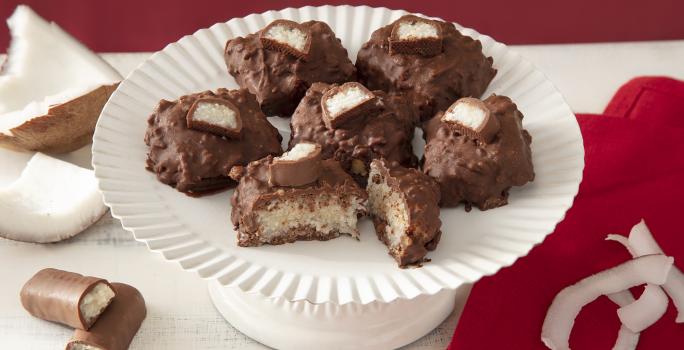 Receita de Cocada Prestígio maravilhosa feita com Chocolate PRESTÍGIO, Leite NINHO Forti+ Pó Integral, Cobertura de Chocolate Blend GAROTO, flocos de arroz e coco ralado fino