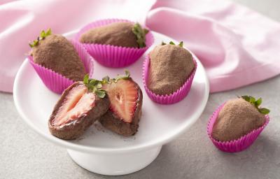 • 3.Deixe que cada pessoa se sirva, espetando um pedaço de fruta na ponta de um garfo de cabo longo (próprio para fondue), mergulhando-o na fondue e depois no chocolate granulado.