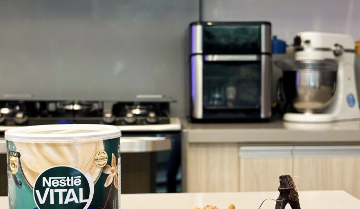 A receita de banana assada com Nestlé Vital é deliciosa e super fácil de fazer. Para essa receita você vai precisar de banana, nozes, canela em pó e o lançamento Vital da Nestlé que é um suplemento alimentar em pó feito para o seu ritual matinal, que vai contribuir com os seus músculos, ossos, te dar mais energia e auxiliar na imunidade. Essa é uma bela e diferente opção de sobremesa para o jantar, para ajudar na vontade de doce sem perder o foco na rotina alimentar.