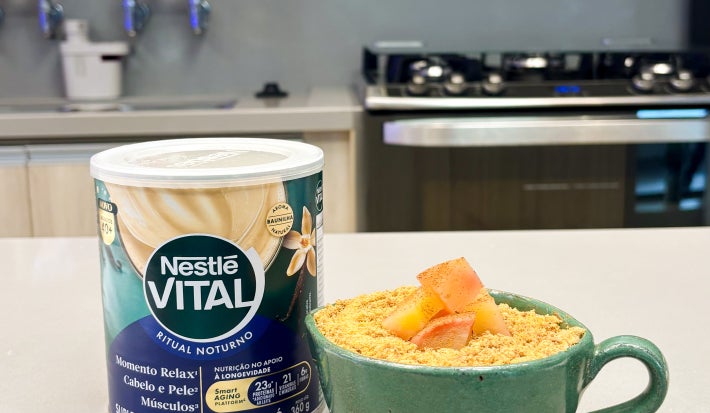 A receita de maçã com canela no micro-ondas com Nestlé Vital é deliciosa e super fácil de fazer. Para essa receita você vai precisar de maçã, água, canela em pó, Tostines Especiarias e o lançamento Vital da Nestlé que é um suplemento alimentar em pó feito para o seu ritual matinal, que vai contribuir com os seus músculos, ossos, te dar mais energia e auxiliar na imunidade. Uma ótima opção para uma sobremesa mais saudável e quentinha para caber na sua rotina alimentar.