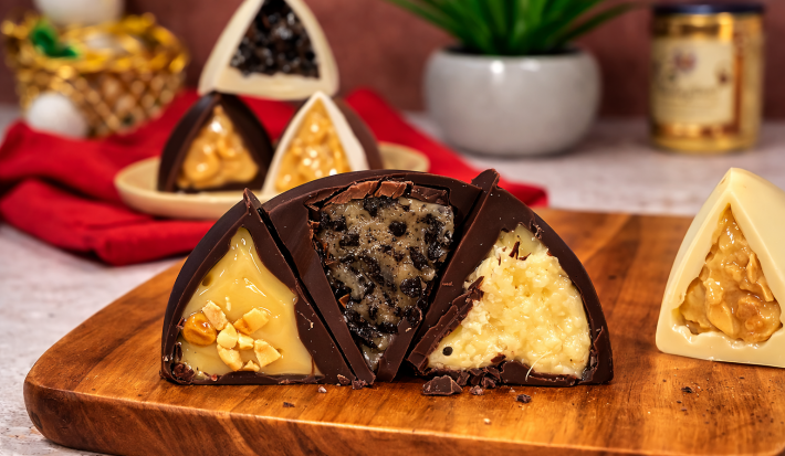 A receita de Ovo de Páscoa de Fatia foi inspirada nos sabores dos novos lançamentos da Nestlé, os tabletes recheados de Prestígio, Negresco e Charge, é uma ótima opção para presentear e surpreender no domingo de Páscoa, além de ser delicioso e feito para compartilhar com a família. Para essa receita, você vai precisar de chocolate derretido, forma com molde de ovo de Páscoa, Leite Moça, Nestlé Creme de Leite, Ninho em Pó, coco ralado, Biscoito Negresco, amendoim e calda de caramelo. Com tantos ingredientes assim, o sabor é garantido!