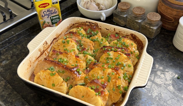 Escolha um abacaxi maduro, mas firme, para que ele asse sem desmanchar e mantenha o contraste agridoce perfeito.