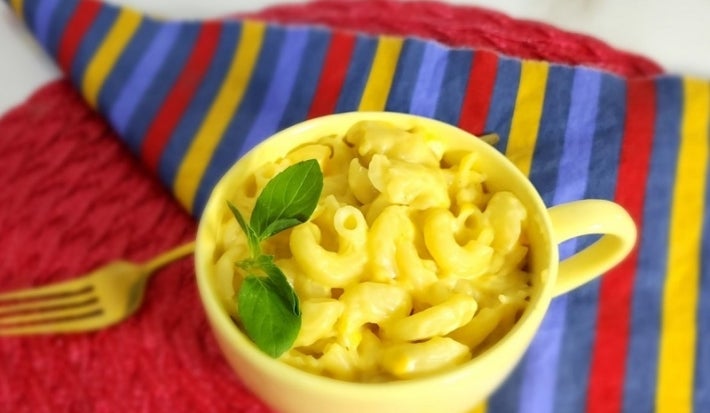 Receita de Mac and Cheese na Caneca deliciosa feita com MAGGI Fondor, Leite líquido NINHO Forti+ Integral e queijo parmesão ralado