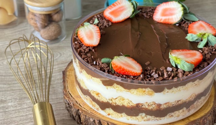 Espere o bolo esfriar completamente para evitar que os cremes amoleçam demais e a montagem fique encharcada.